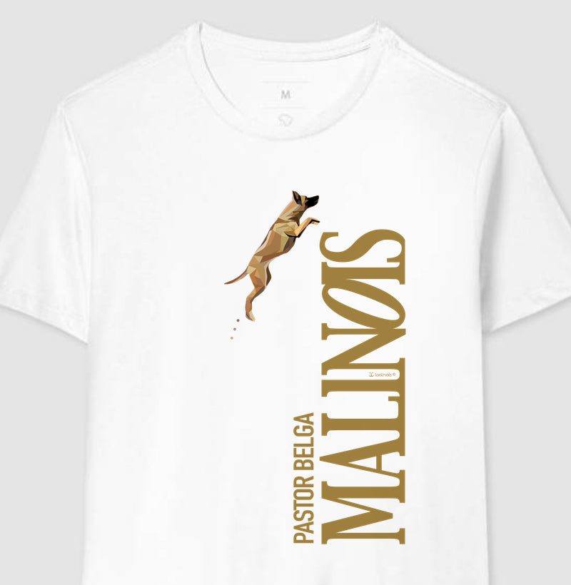 Camiseta Pastor Belga Malinois. Salto - Geoma 🐾 Coleção GEOMA Exclusiva iAnimals. Captura traços marcantes...
